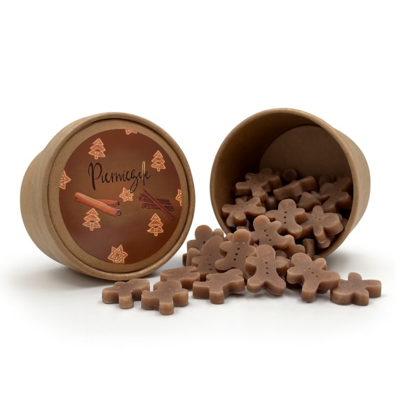 Do tego naturalne olejki zapachowe, dzięki którym wosk pachnie jak prawdziwe, świeżo upieczone pierniczki — ciepło, domowo i cudownie słodko.