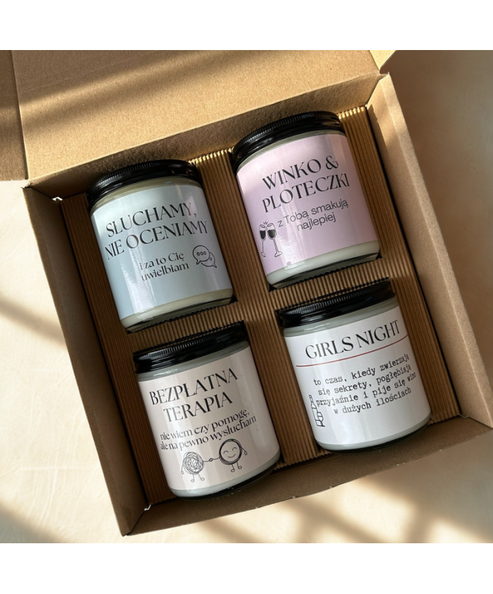 Najlepsze rozmowy to te przy kieliszku wina, podczas babskiego wieczoru albo wtedy, gdy po prostu trzeba się wygadać i być wysłuchaną. Ten zestaw świec powstał właśnie po to, by towarzyszyć Wam w każdej z tych chwil – z humorem, czułością i wsparciem.